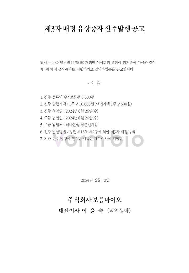 (ÁÖ)º¸¸§¹ÙÀÌ¿À Á¦3ÀÚ ¹èÁ¤ À¯»óÁõÀÚ ½ÅÁÖ¹ßÇà °ø°í